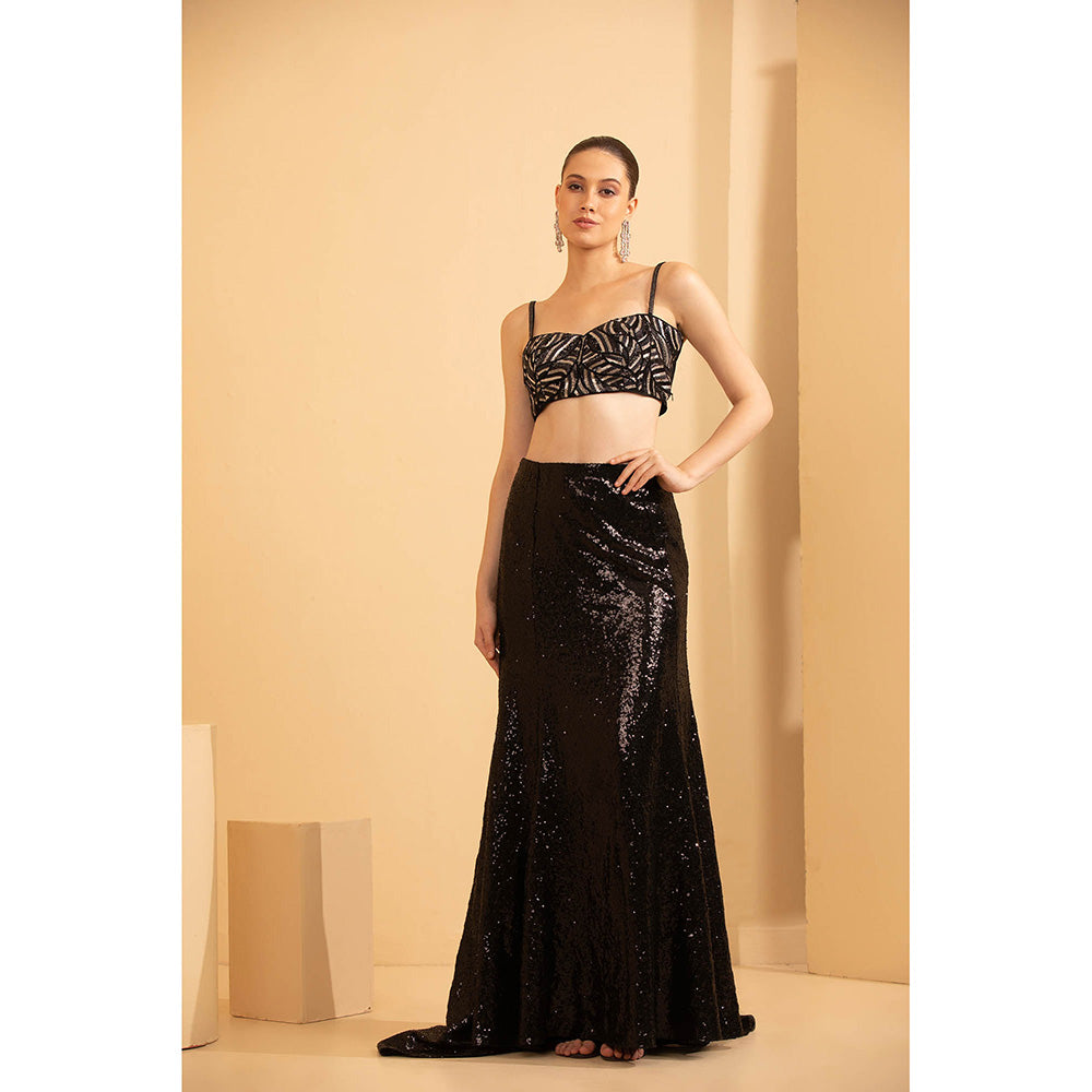 Shriya Dahlia Black Bustier with Fish Cut Skirt (Set of 2)