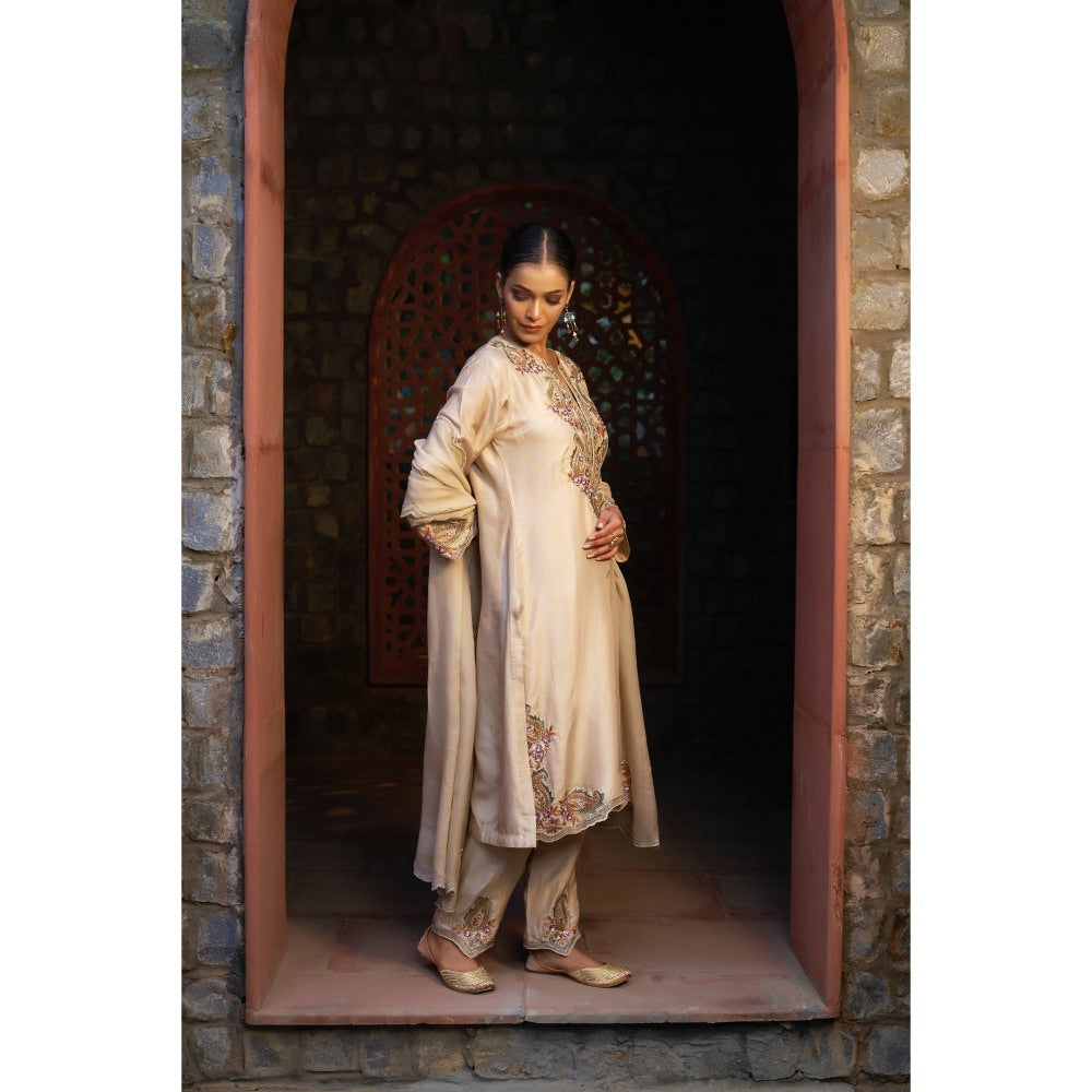 Sonia Khatri Beige Kurta with Pant and Dupatta (Set of 3)