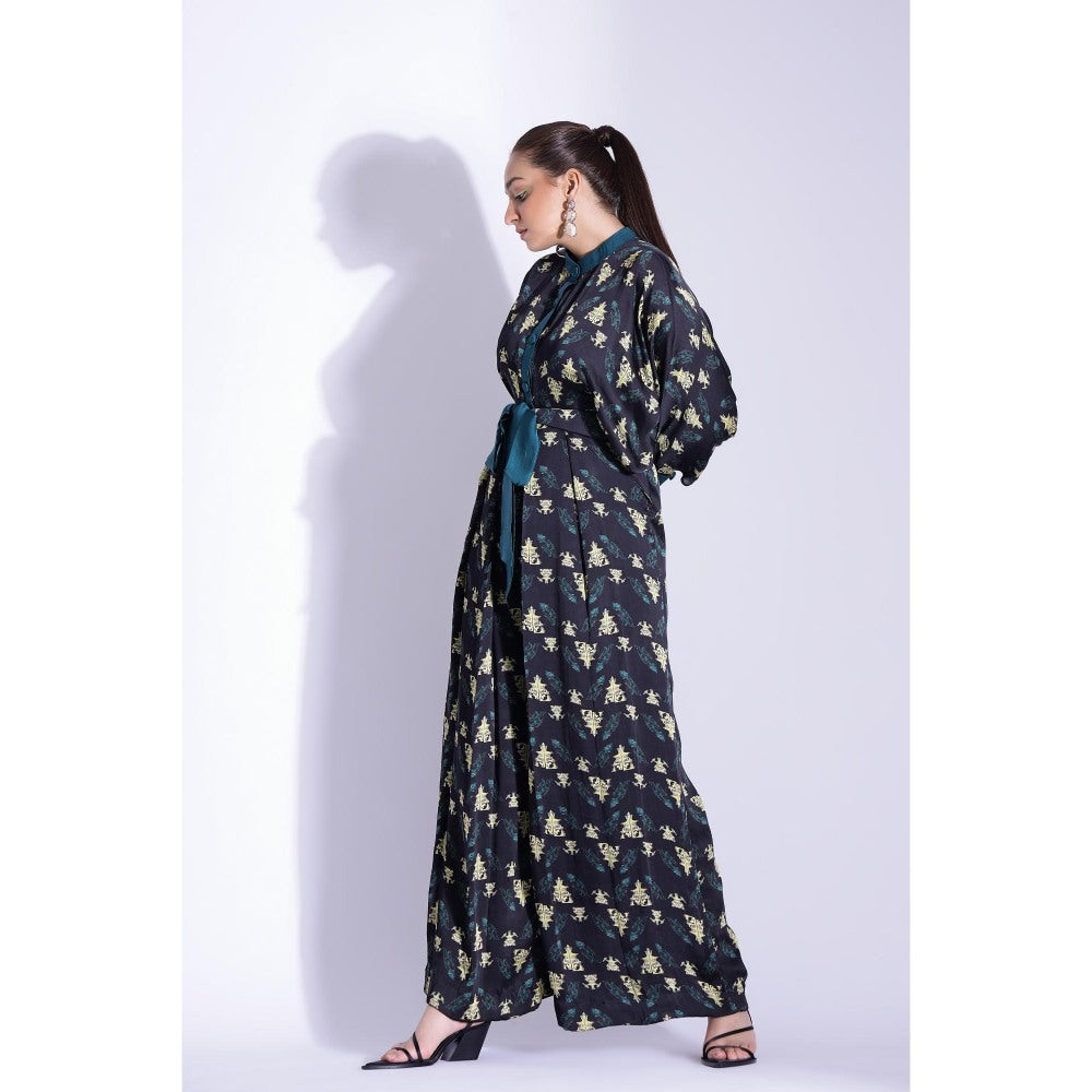 Studio Surbhi Black Printed Kimono Jumpsuit with Belt (Set of 2)