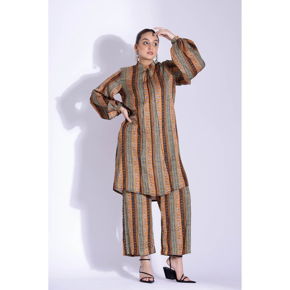 Multicolor Cotton Silk Printed Kurta and Pant (Set of 2)