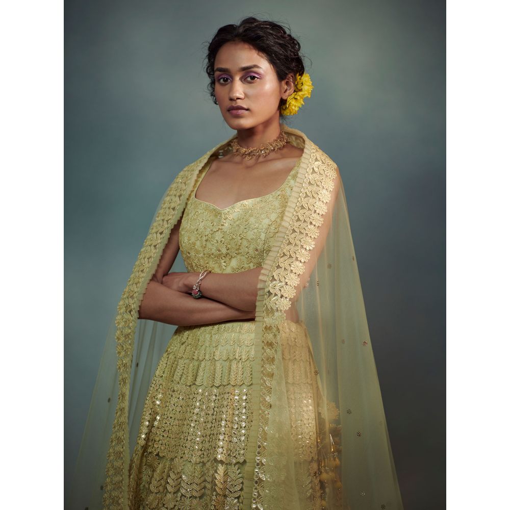 SUHINO Lime Green Lehenga Blouse & Pant (Set of 3)