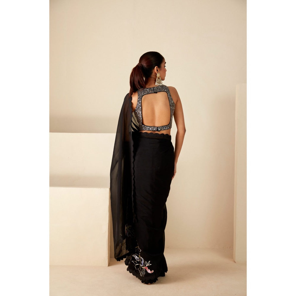 Suruchi Parakh Black Embroidered Saree with Petticoat and Blouse with Stitched