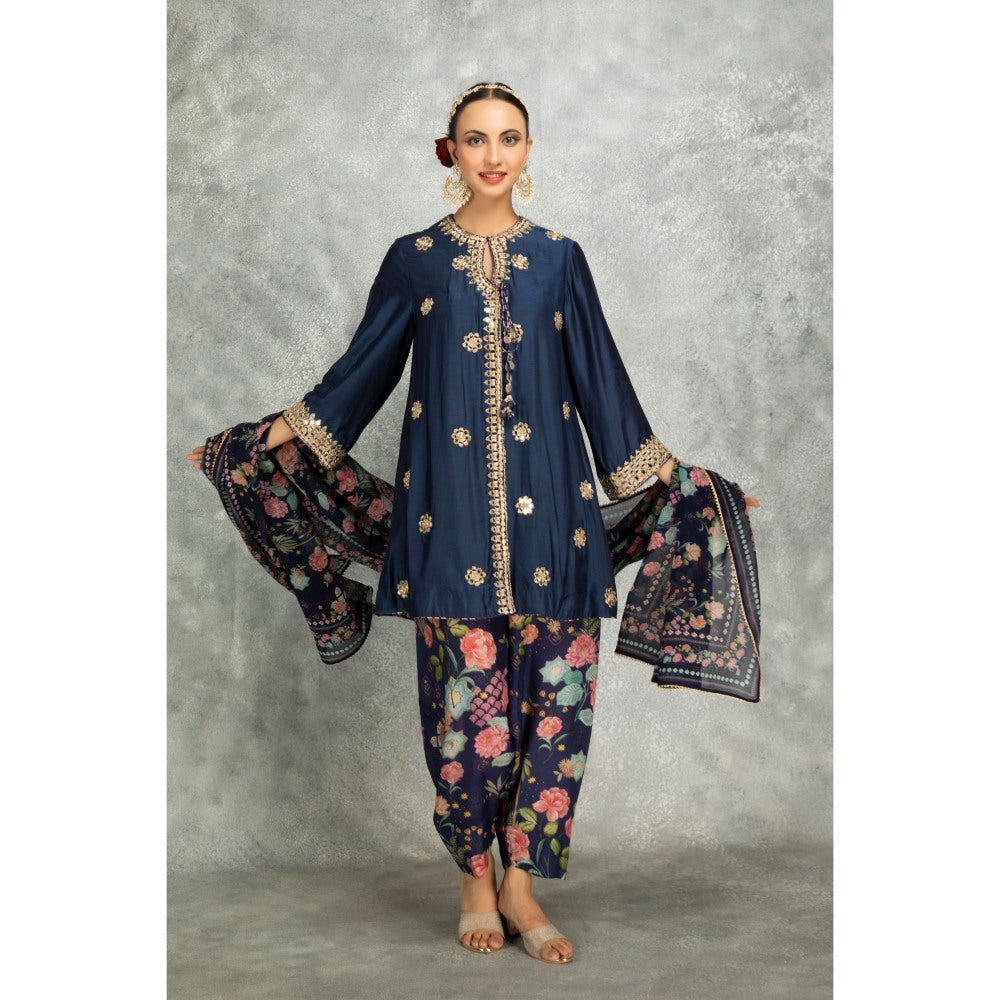 Tanu Malhotra Blue Mirror Embroidered Kurta with Salwar and Dupatta (Set of 3)