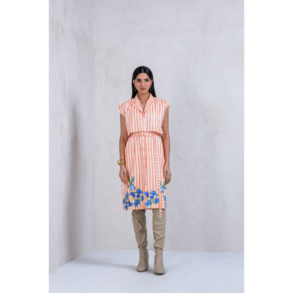 Description : Experience Bold Stripes With Bold Contrast Floral Patches With This Trench Dress. The Stripes Are Further Taken Up By A Notch With Sequin Highlights. The Button Down Trench Dress Accented With Golden Buckle & Golden Eyelets Makes It An Absolute Stunner