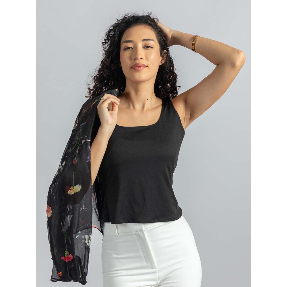 Description : This Black Printed Chiffon Shirt Is A Stunning Blend Of Elegance And Comfort, Featuring A Colourful Floral Print That Adds A Lively Touch. The Comfortable Fit Ensures All-Day Wear, While The Full Sleeves With Gathered Cuffs Create A Soft, Refined Look. A Black Button At The Front And A Detached Black Inner Lining Provide Added Structure And Versatility, Making This Shirt A Perfect Addition To Your Wardrobe.