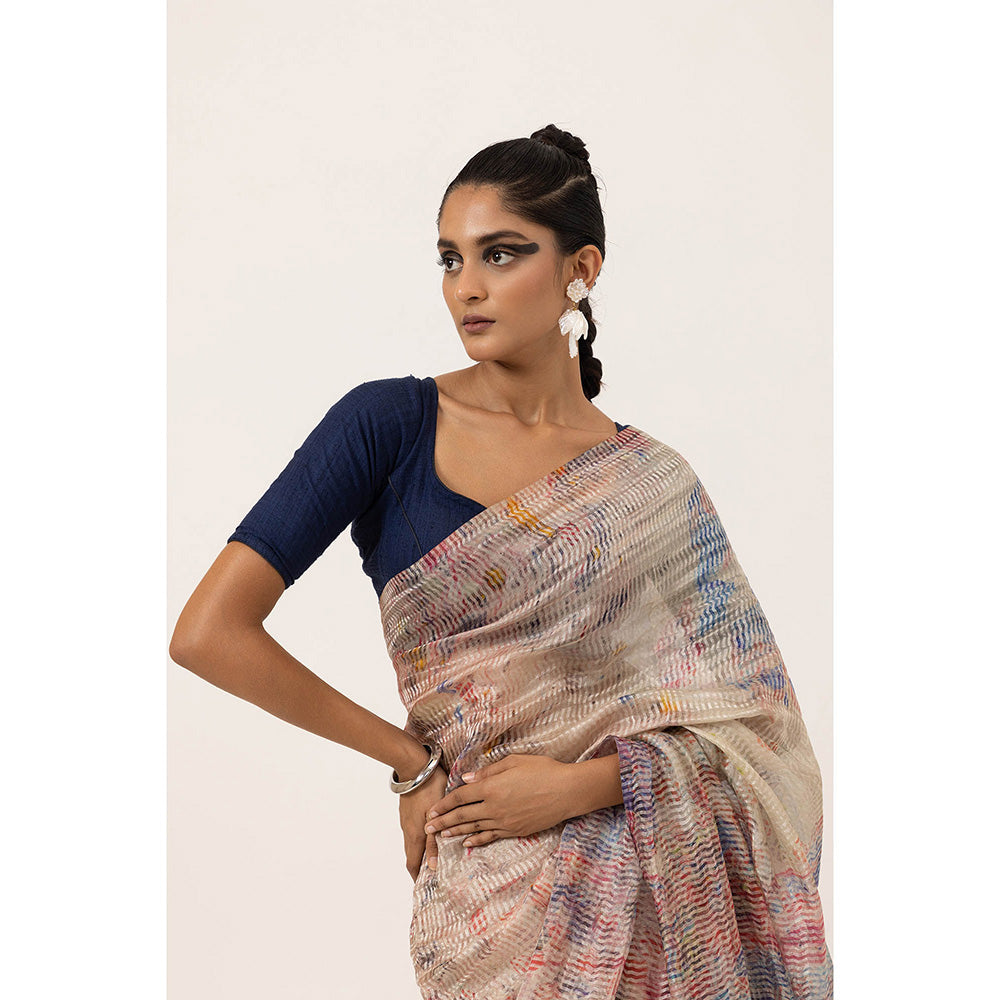 UNALLUME BY NISHA Marble Muse Silk Saree with Unstitched Blouse - Multi-Color