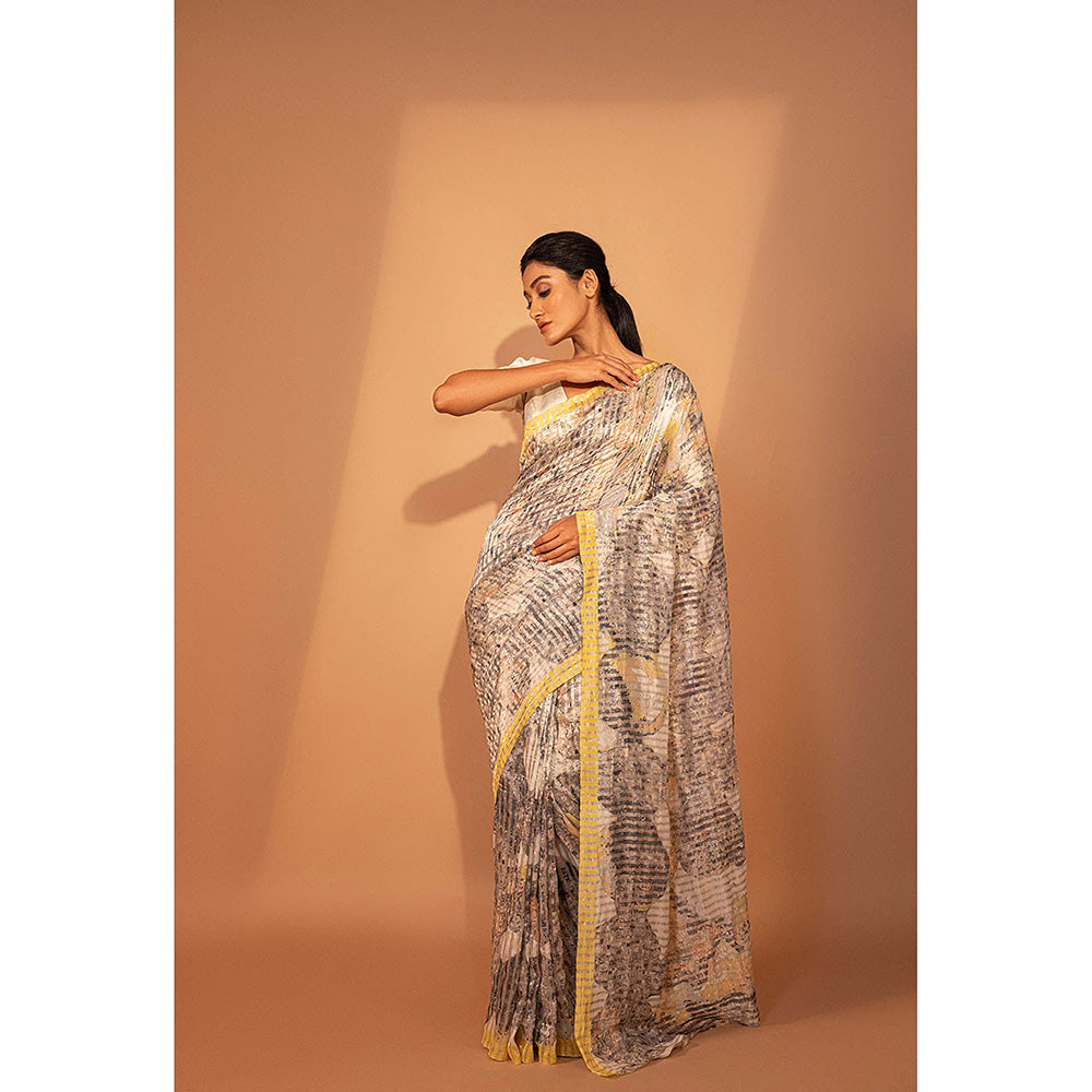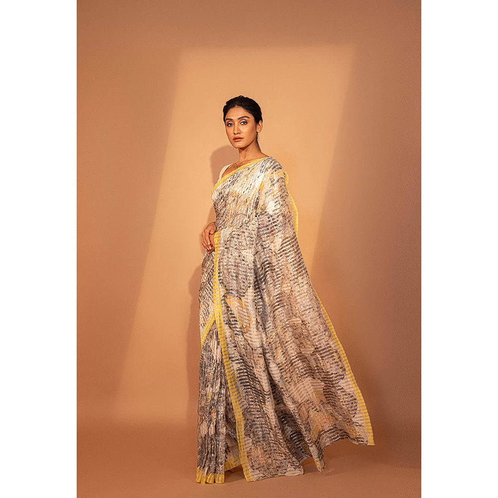 UNALLUME BY NISHA Misty Citrus Silk Saree with Unstitched Blouse - Multi-Color