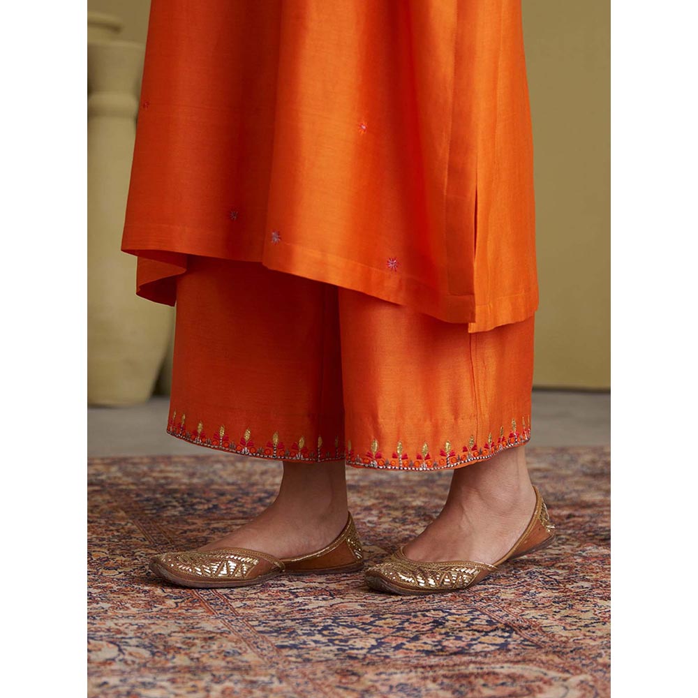 Vaaya The Narangi Silk Chanderi Orange Kurta With Pant And Dupatta