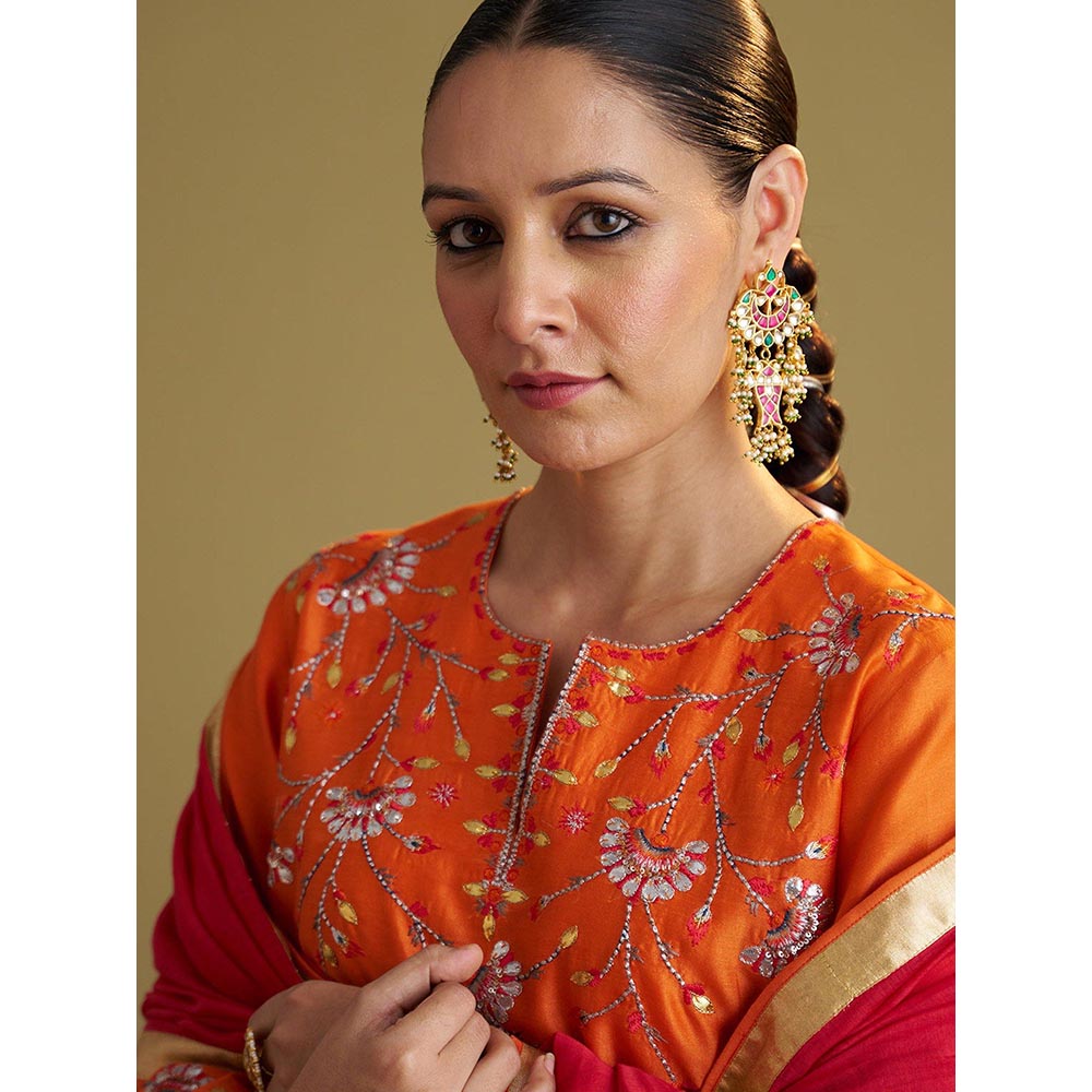 The Narangi Silk Chanderi Orange Kurta With Pant And Dupatta