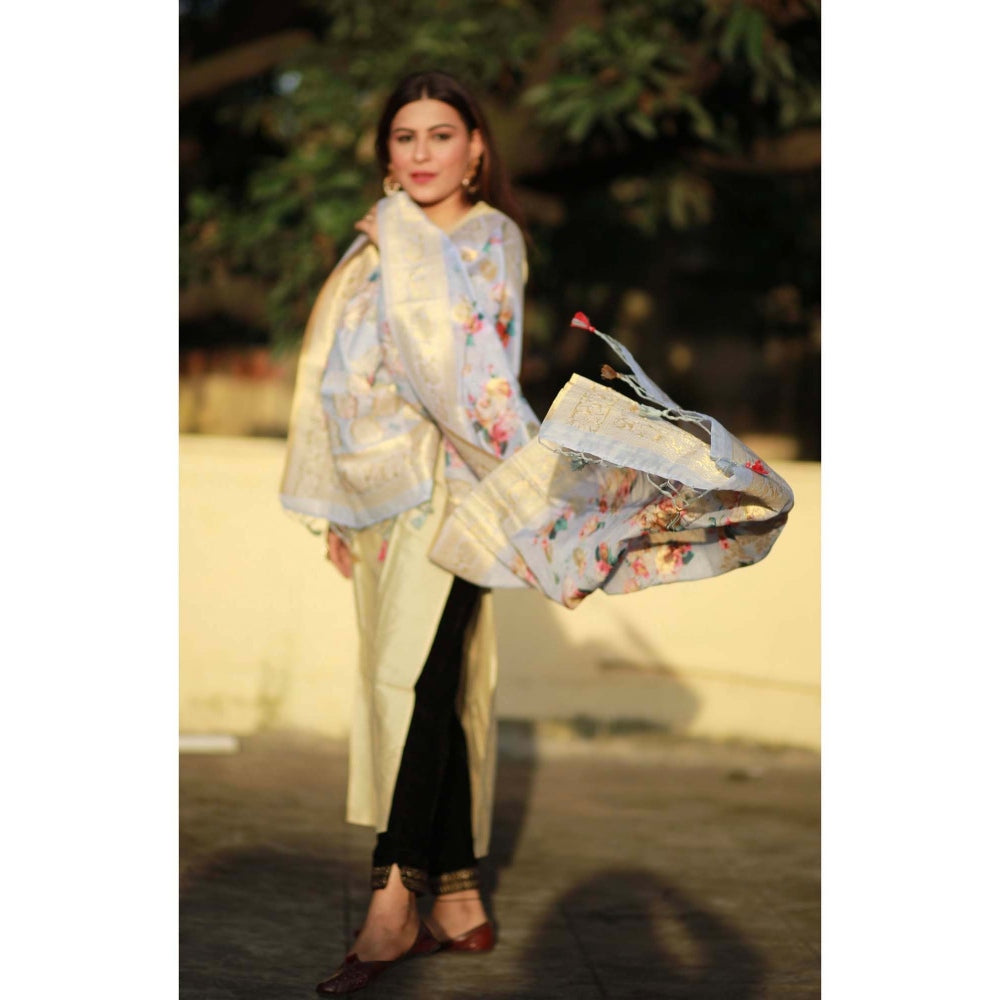Zal from Benaras Blue Pure Silk Banarasi Handloom Dupatta