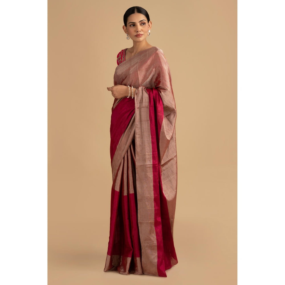 Zal from Benaras Hot Pink Pure Chanderi Tissue Handloom Saree without Blouse