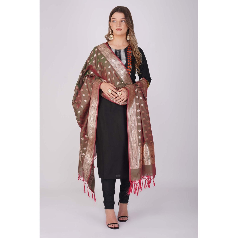 Description : Looking for A Dupatta for A Pre-Wedding Scene Shoot or To Attend Invitations From Relatives After Your Wedding? This Olive Organza Silk Dupatta Could Be The Perfect Choice. Zari Weaving Motifs Along The Silk Fabric and Pleasing Border Zari Work Will Provide A Splendid Appeal To Your Ethnic Suit. It Can Also Make A Plain Suit Look Astonishing At Weddings or Festive Occasions. Dupatta Length 2.5 Mtr