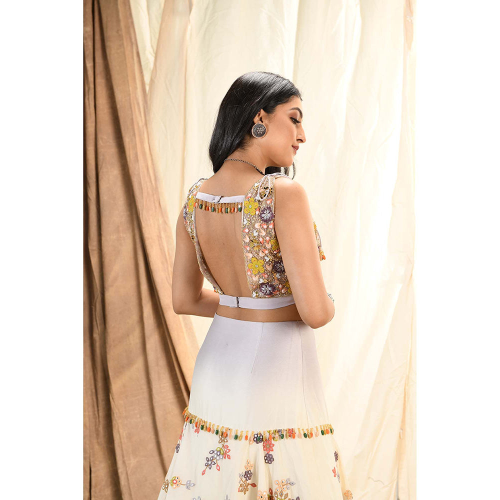Aaryaa By Kashveen Kohli White Floral Mirror & Thread Embroidered Lehenga With Blouse