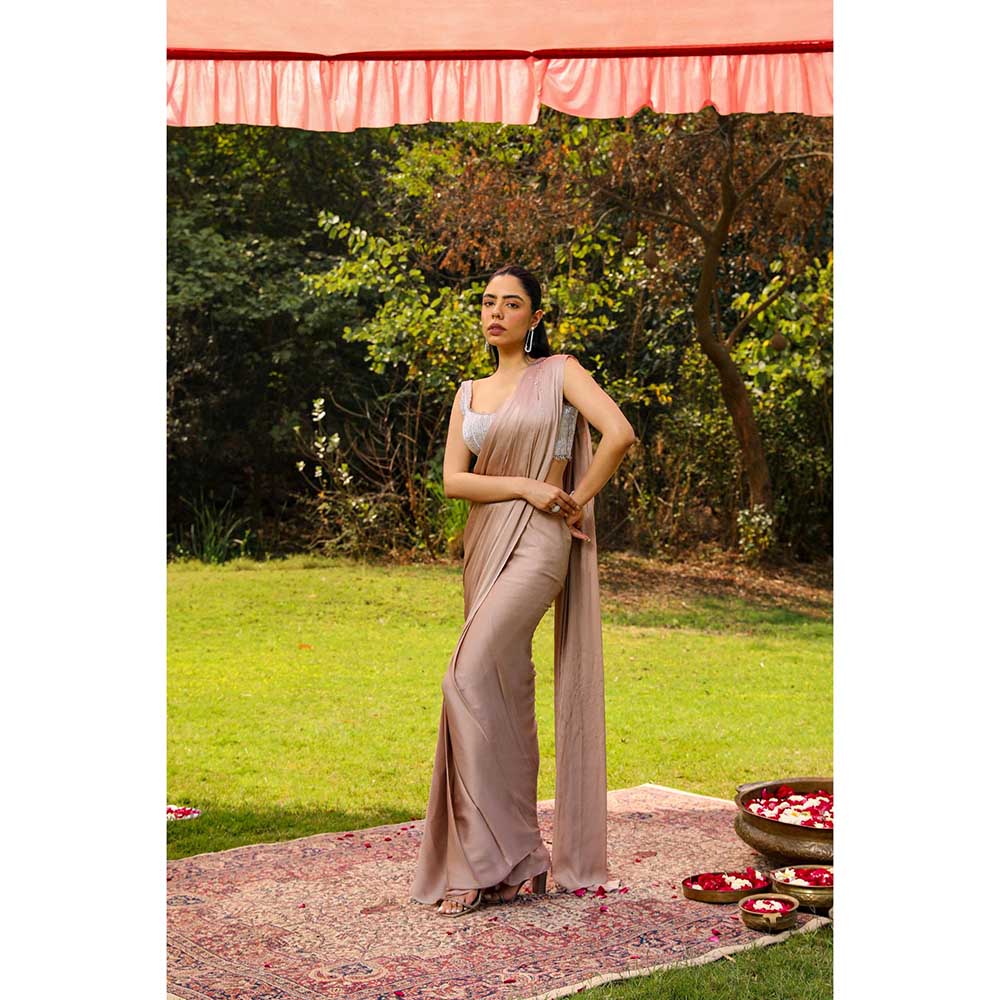 Description : Effortlessly stylish, this heavy dori and cut dana embellished stitched blouse with drape saree from Ajiesh Oberoi blends classic charm with modern ease. It is crafted from high-quality fabric. It features sleeveless and sweetheart style. It's the epitome of understated elegance, perfect for festive, wedding, or special occasions.