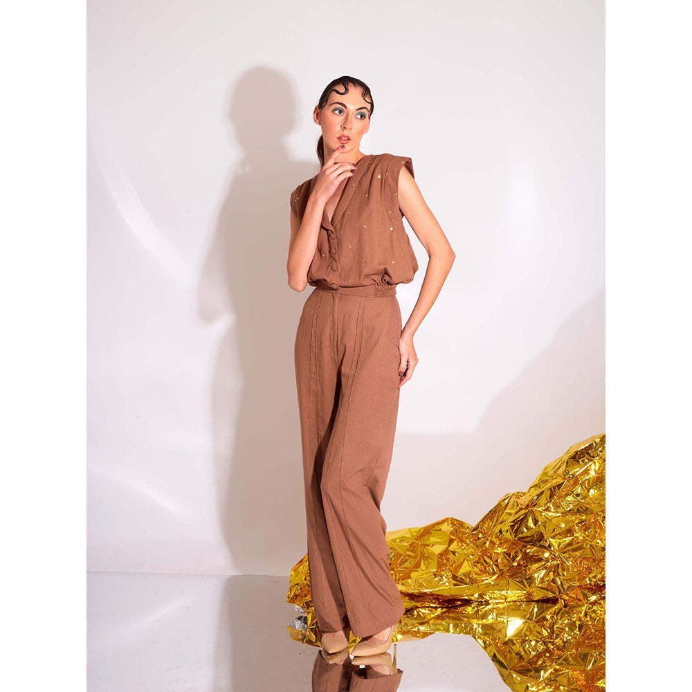 AN'ERA BY ASMITA VERMA Brown Mod Top with Pant (Set of 2)