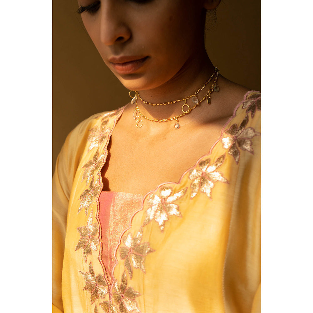 Apeksha Jain Label Yellow Anarkali with Pant and Dupatta (Set of 3)