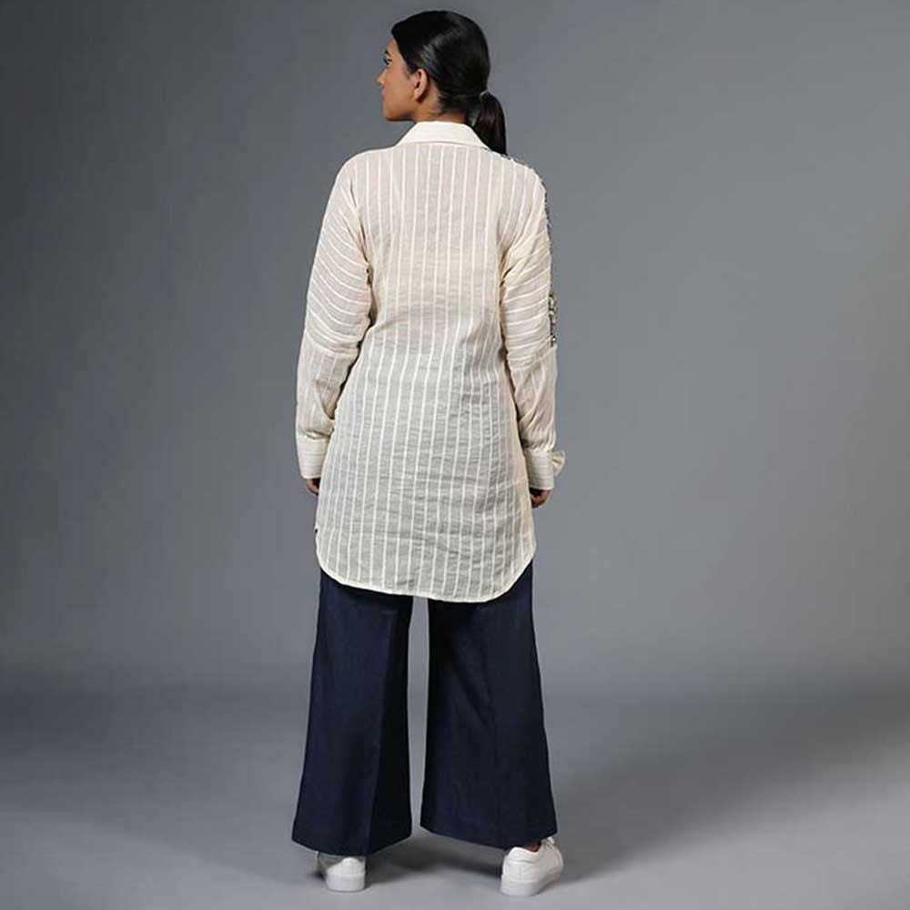 Description : Featuring our narangi tropical handpainted shirt. Comes with a lace on one shoulder and Tailored to sartorial perfection from premium quality fabric, it assures a soft and soothing touch against the skin. The exquisite silhouette adds to its appeal.