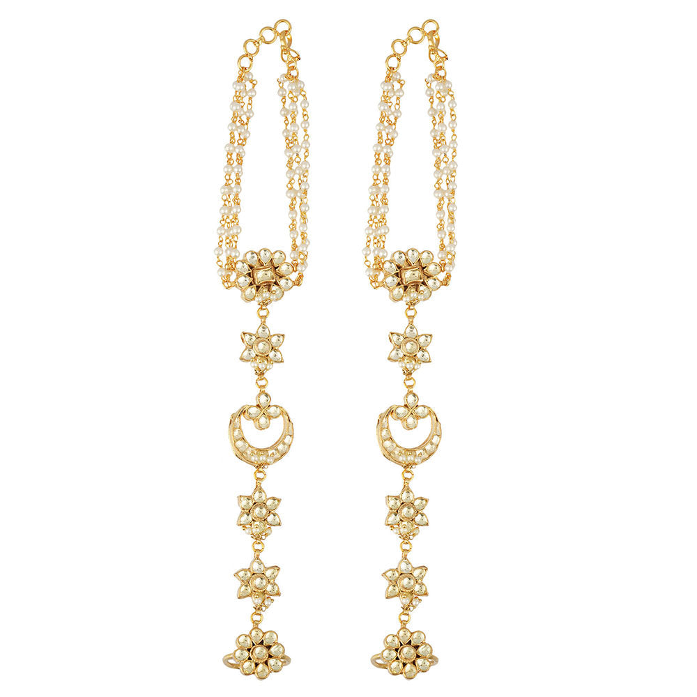 Auraa Trends 22Kt Gold Plated Classic Kundan Hathfool (Set of 2)