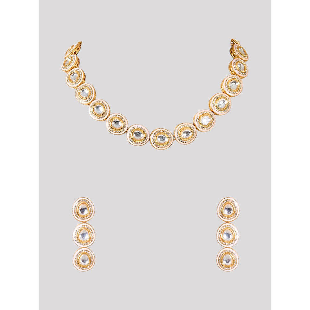 Auraa Trends Gold Finish Kundan Polka White Stone Choker Jewellery Set