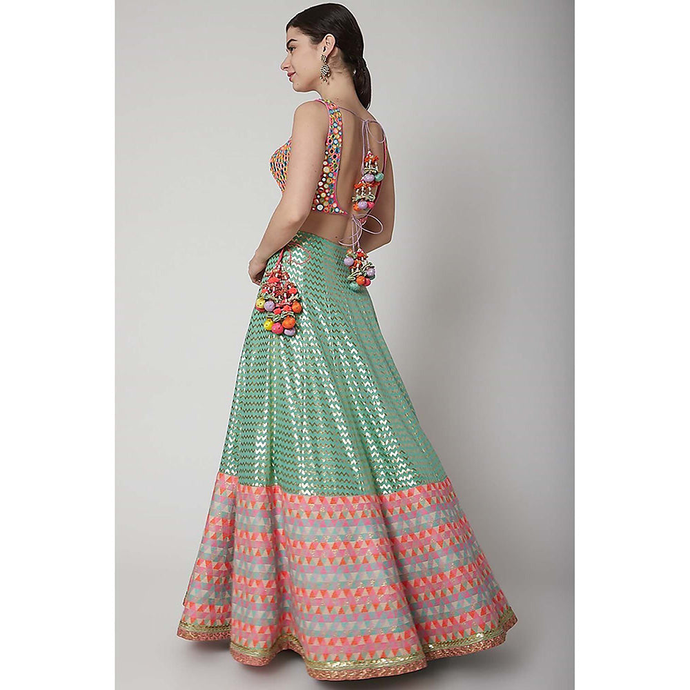 AVNNI KAPUR Multi-Color Mirror Work Choli with Banarsi Woven Lehenga and Dupatta (Set of 3)