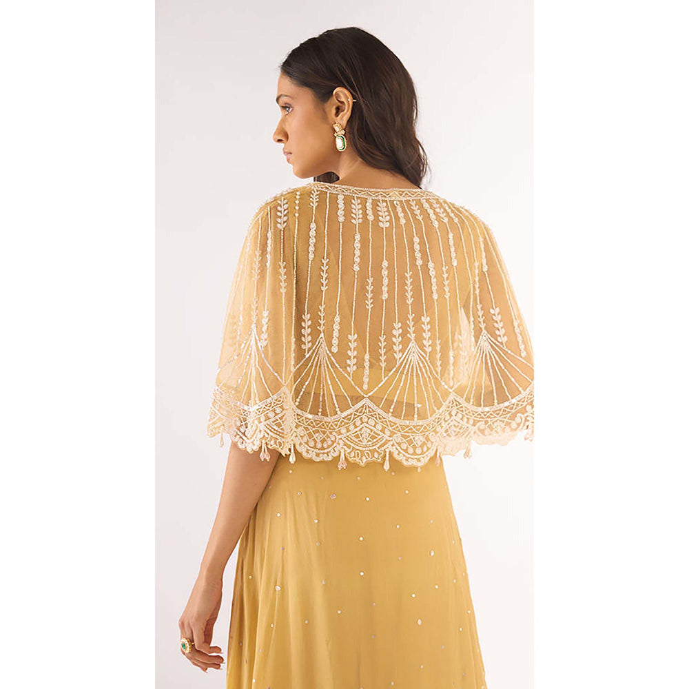 Gold Georgette Embroidered Lehenga with Blouse and Jacket