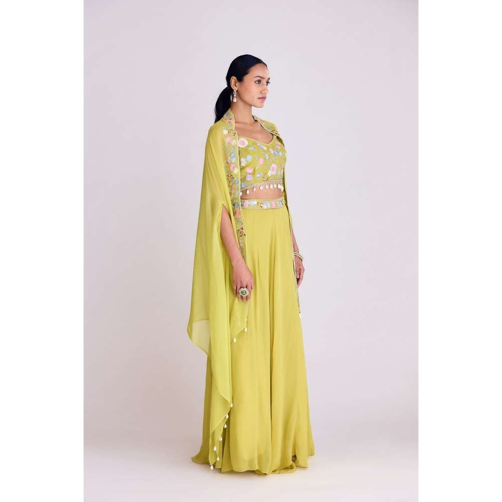 Basanti Kapde aur Koffee Green Georgette Lehenga with Blouse and Cape (Set of 3)