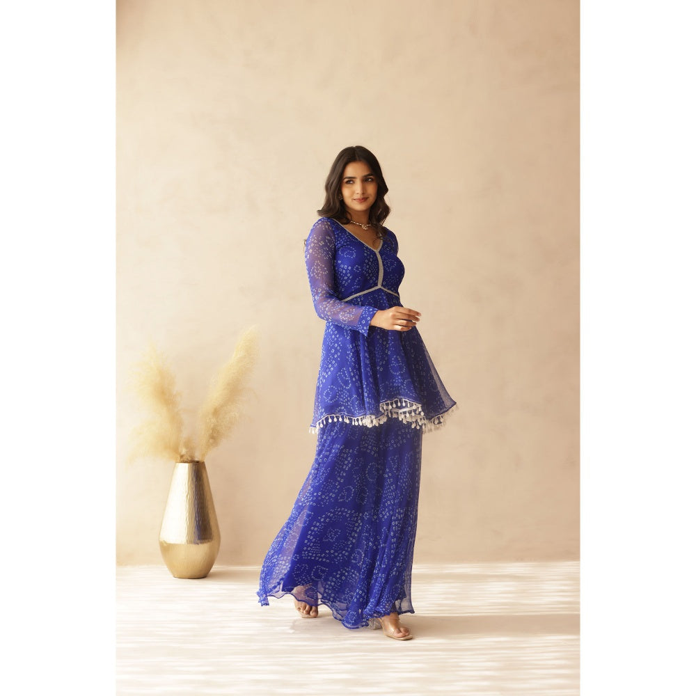 DEASHA INDIA Dhwani Blue Small Bandhej Co-Ord (Set of 2)