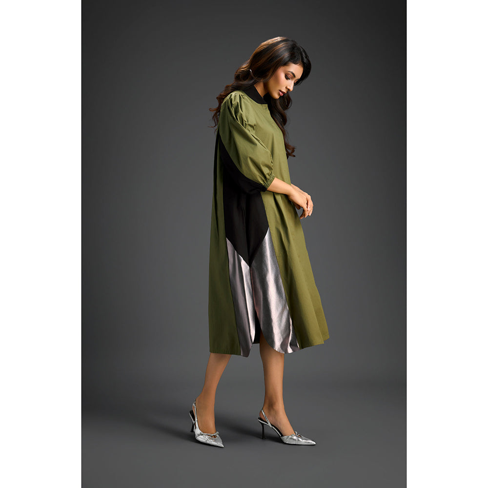 Deepika Arora Womens Colorblock Olive Dress