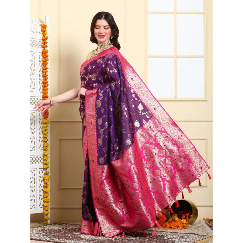 Dress & Dazzle Deep Purple Banarasi Silk Saree with Unstitched Blouse