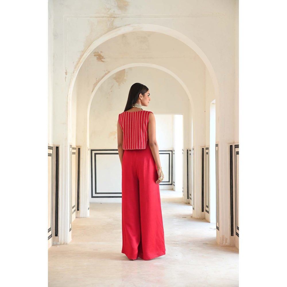Description : Ambrace the elegant style with this red co-ord set set from Ease Clothing. Made from high quality satin, it features zipper closure and embroidered pattern along with sleeveless & sweetheart design. Pair it with minimal jewellery to complete your ensemble.