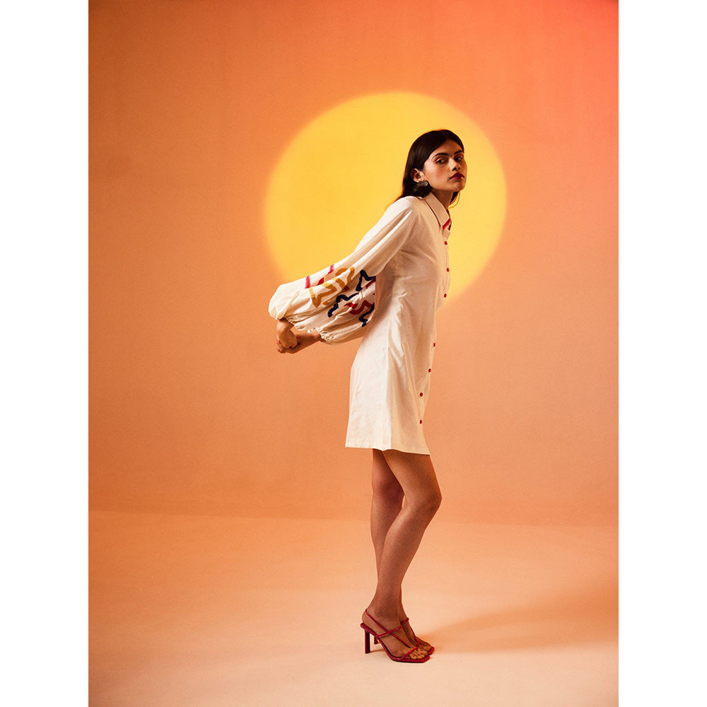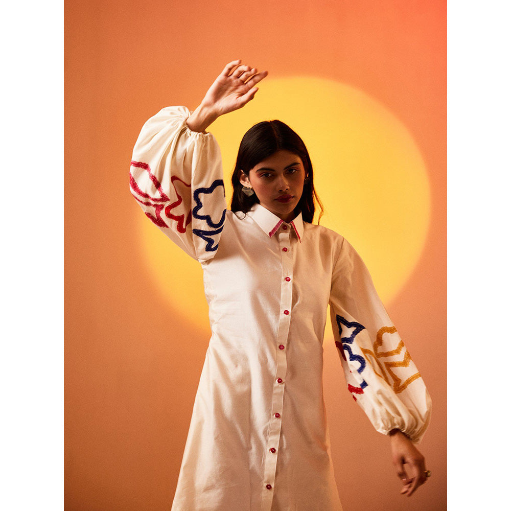 Description : Indulge in the epitome of elegance with our White Silk Chanderi Dress featuring exquisite multi-color flower thread work on balloon sleeves. This dress is a celebration of grace, style, and meticulous craftsmanship, making it the perfect choice for your special occasions .Immerse yourself in the luxurious feel of silk chanderi, known for its lightweight and lustrous texture. This dress promises comfort and sophistication, making it an ideal addition to your wardrobe. Admire the artistry of the multi-color flower thread work adorning the balloon sleeves. Each intricate detail is a testament to the skilled craftsmanship, adding a touch of whimsical charm to your ensemble .The dress has front buttons and has a great fit . The multi-color floral embroidery on the sleeves adds a delightful contrast, making a bold statement. This dress effortlessly transitions from daytime events to evening soir es .Embrace your feminine side with the delicate floral thread work that adds a romantic and charming touch. The white backdrop enhances the vibrancy of the colors, creating a visually appealing and harmonious design.