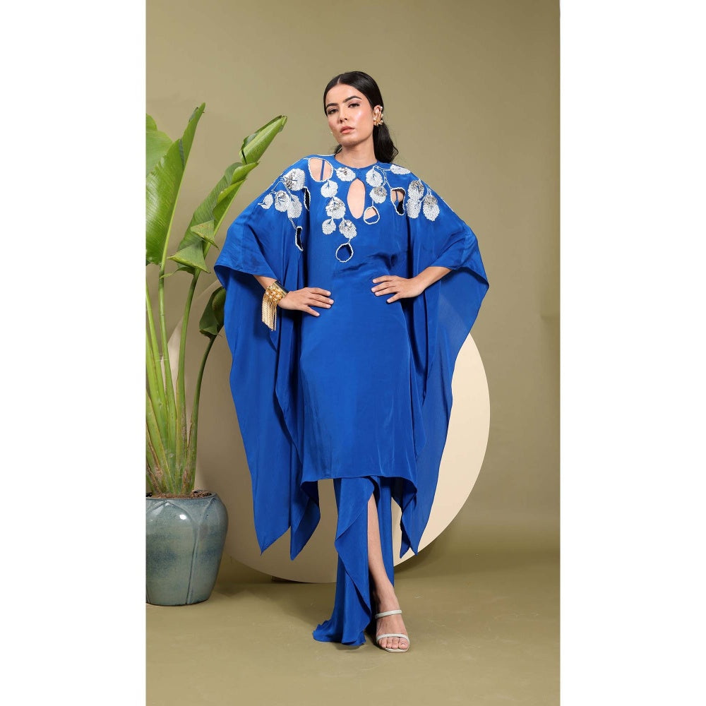 Electric Blue Embroidered Kaftan Style Kurta with Inner and Skirt (Set of 3)