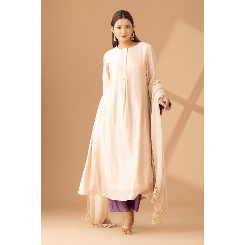 Description : Step into the world of elegance and grace with this nude kurta set from Finethreads by Hina & Nikhat. Crafted from chanderi, this beautiful set is finished with full sleeves and a round neck. Complete the look with a pair of heels and statement jewellery.