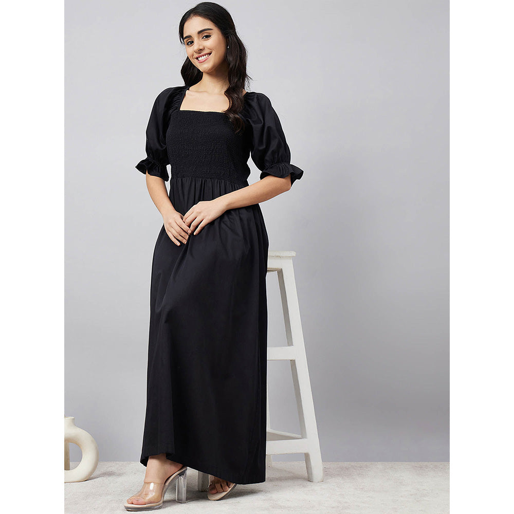 First Resort by Ramola Bachchan Black Smocked Maxi Dress