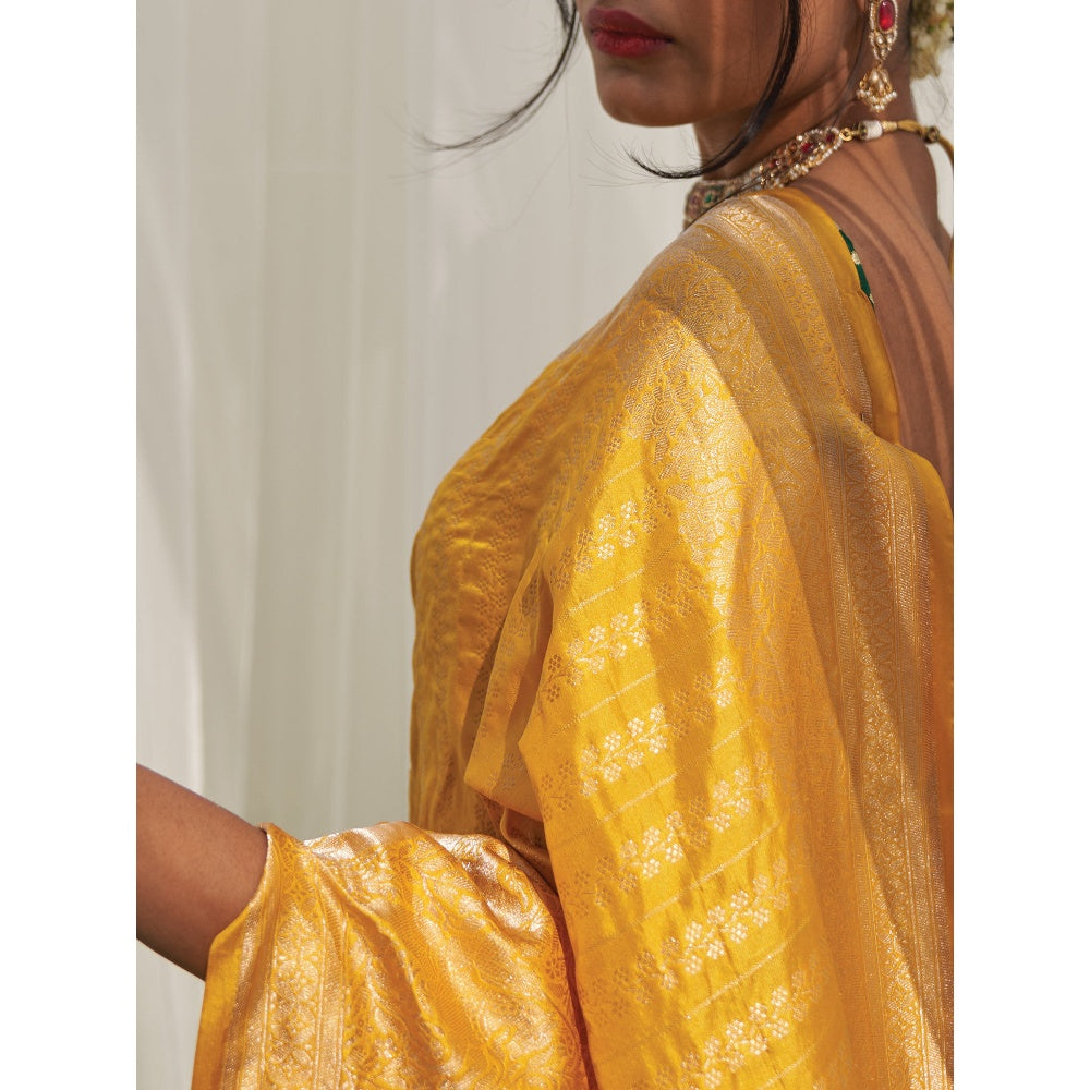Five Point Five Yellow Woven Zari Saree with Unstitched Blouse