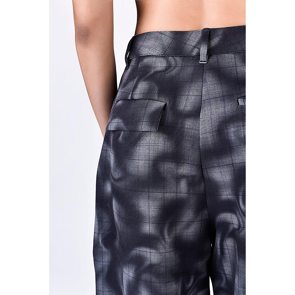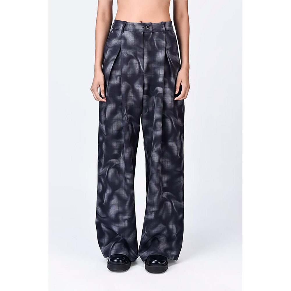 Relaxed-Fit Pleated Trousers In Banana Crepe, Showcasing An Overall Aurora Check Print For A Stylish And Comfortable Addition To Your Wardrobe.