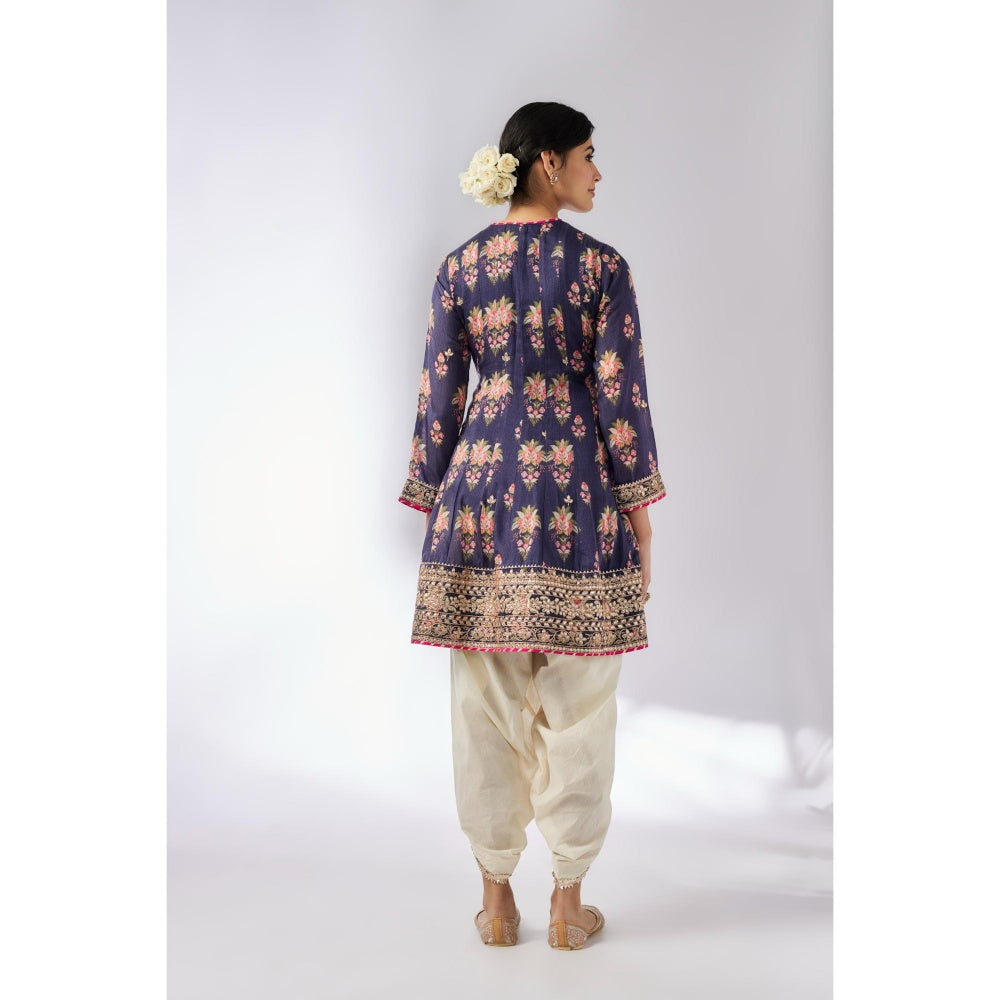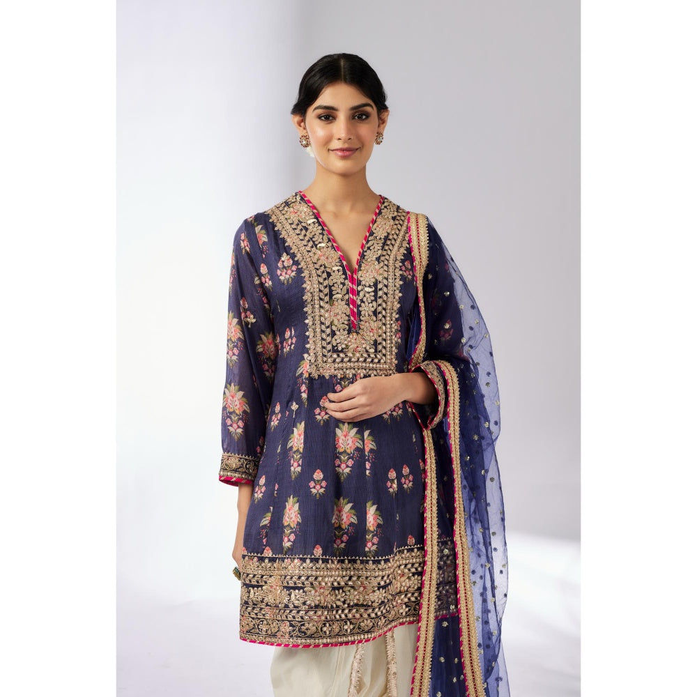 Gopi Vaid Navy Blue Ekta Dhoti with Kurta and Dupatta (Set of 3)