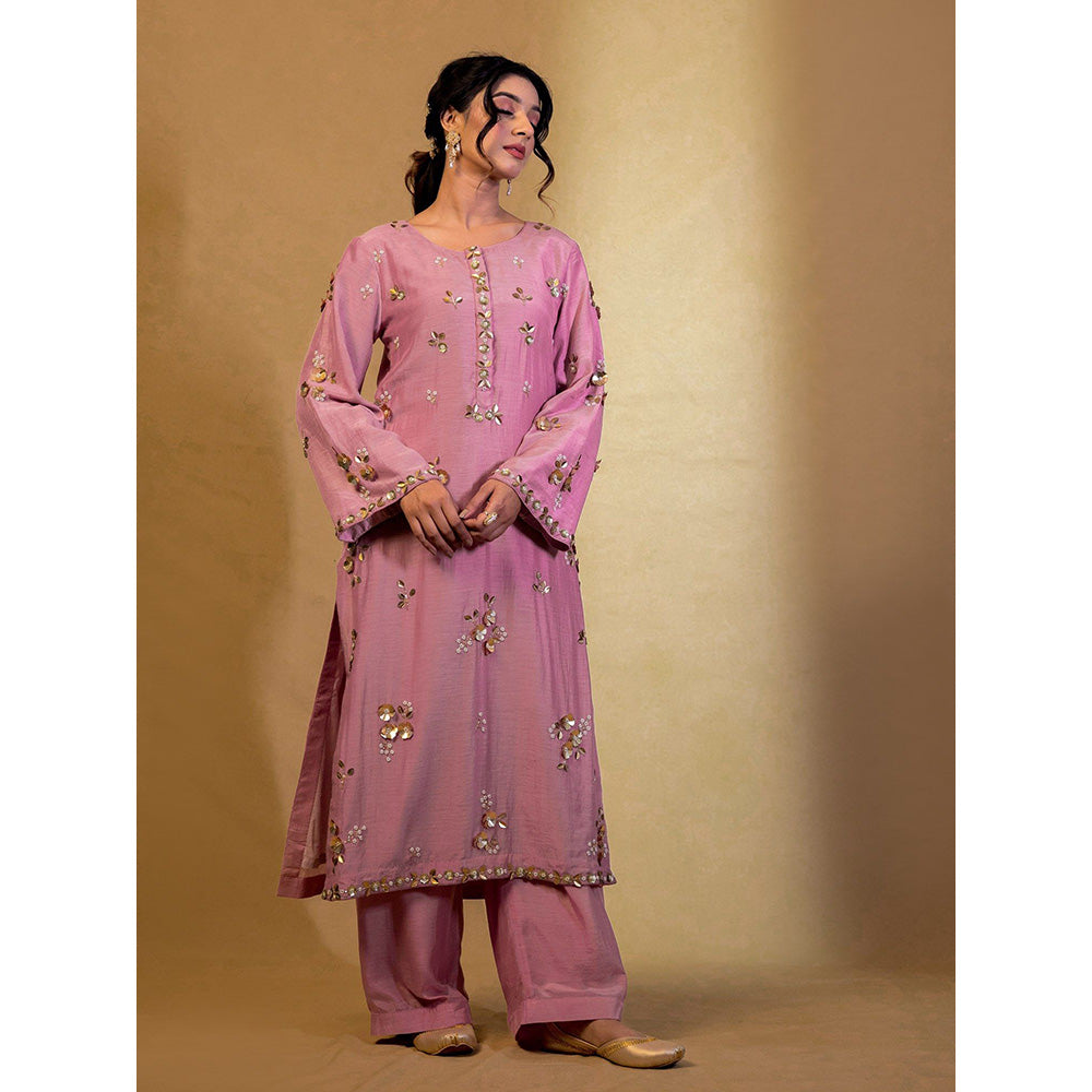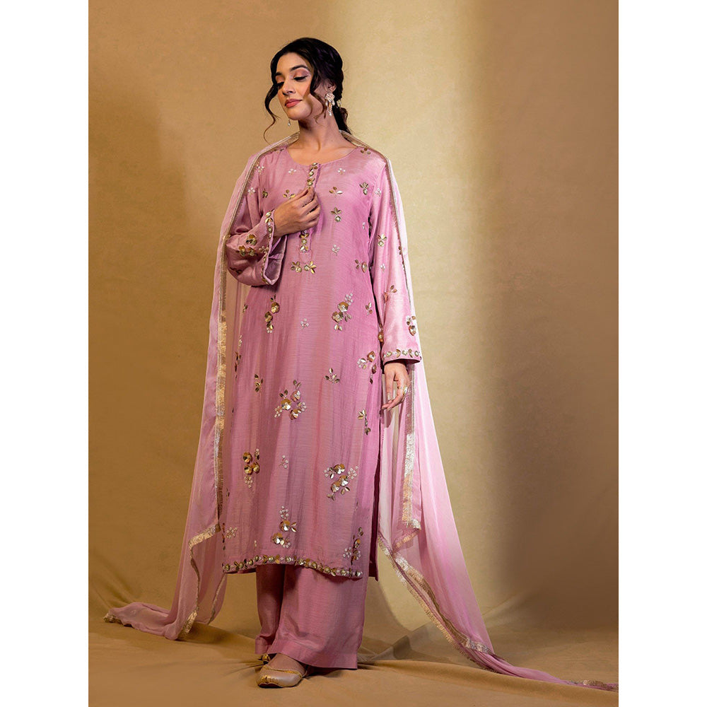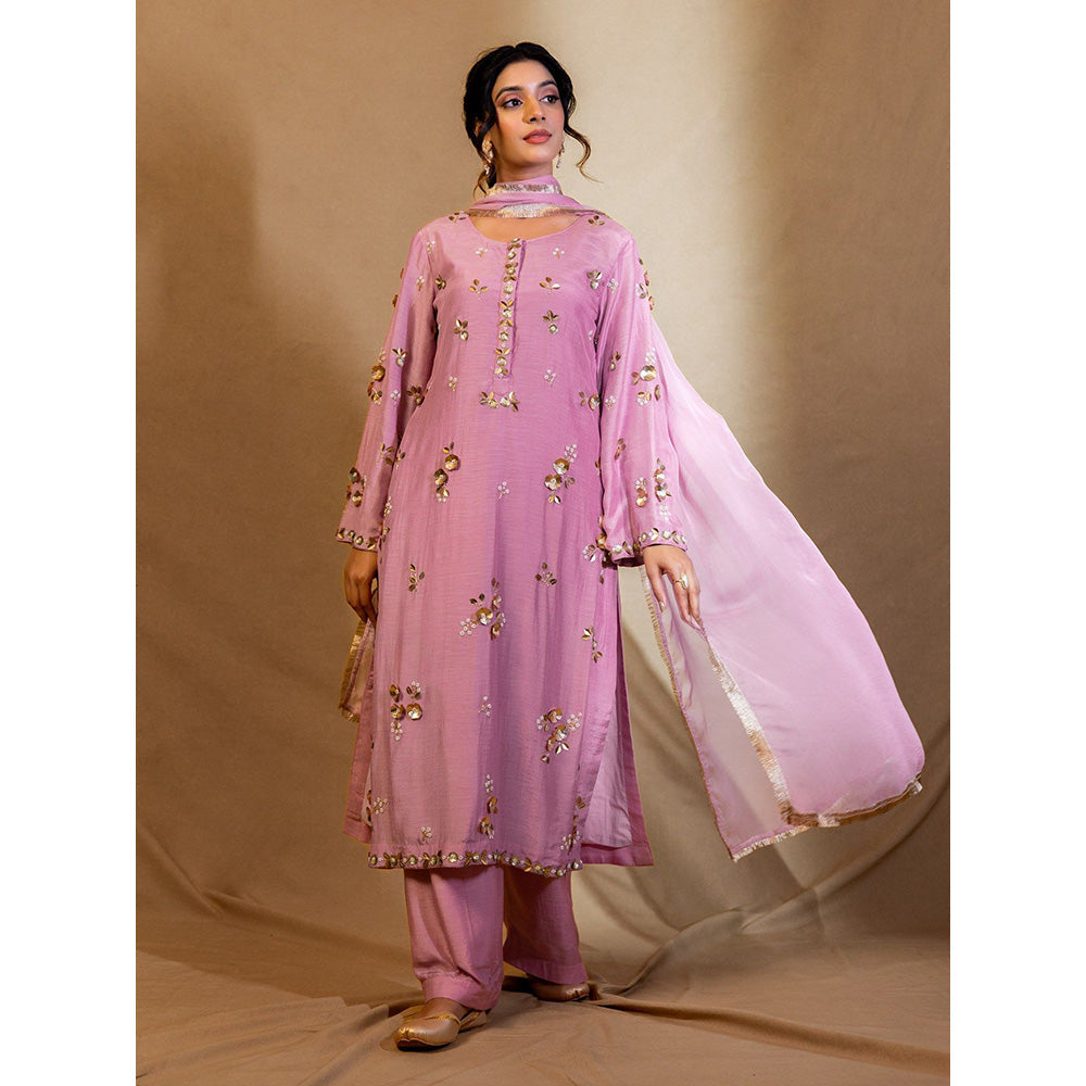 Harleen Kaur Purple Embroidered Kurta with Pant and Dupatta