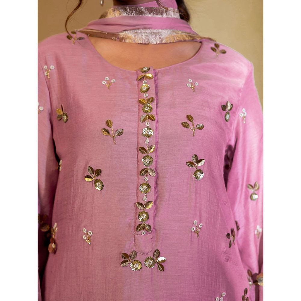 Purple Embroidered Kurta with Pant and Dupatta