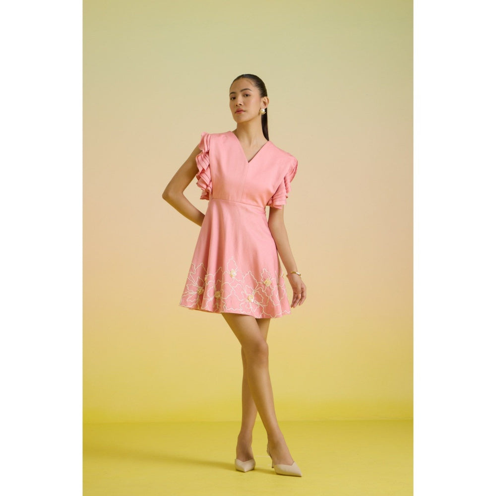HOUSE OF HEATHER Pink Rose Petal Embroidered Mini Dress