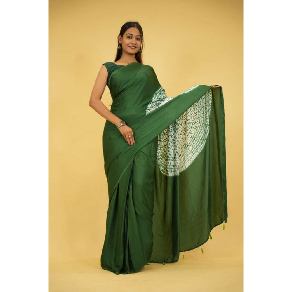 Womens Printed Tassels Green Pre-Draped Saree With Unstitched Blouse