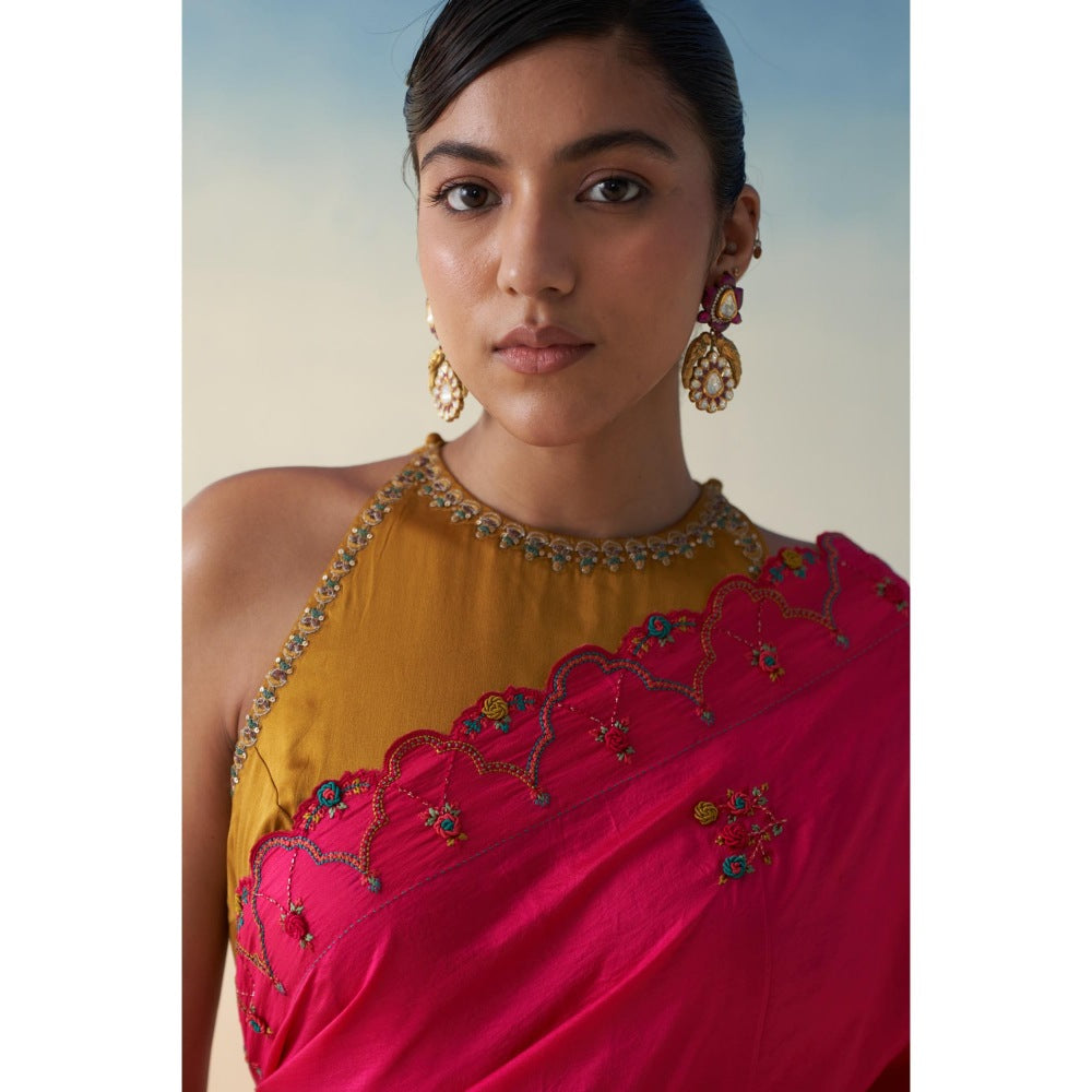 Description : Step Into A Realm Of Elegance and Splendour with Our Magenta Silk Multicolor Embroidered Saree. Crafted To Perfection, This Exquisite Piece Combines The Luxurious Textures Of High-Quality Silk with The Vibrant Hues Of Masterful Embroidery, Making It An Irresistible Addition To Any Wardrobe. The Saree Comes Accompanied By An Organic Cotton-Stitched Petticoat, Ensuring Not Just Style, But Supreme Comfort ( Blouse Is Not The Part Of This Saree, It Is Used Only for Photo Shoot Purpose )