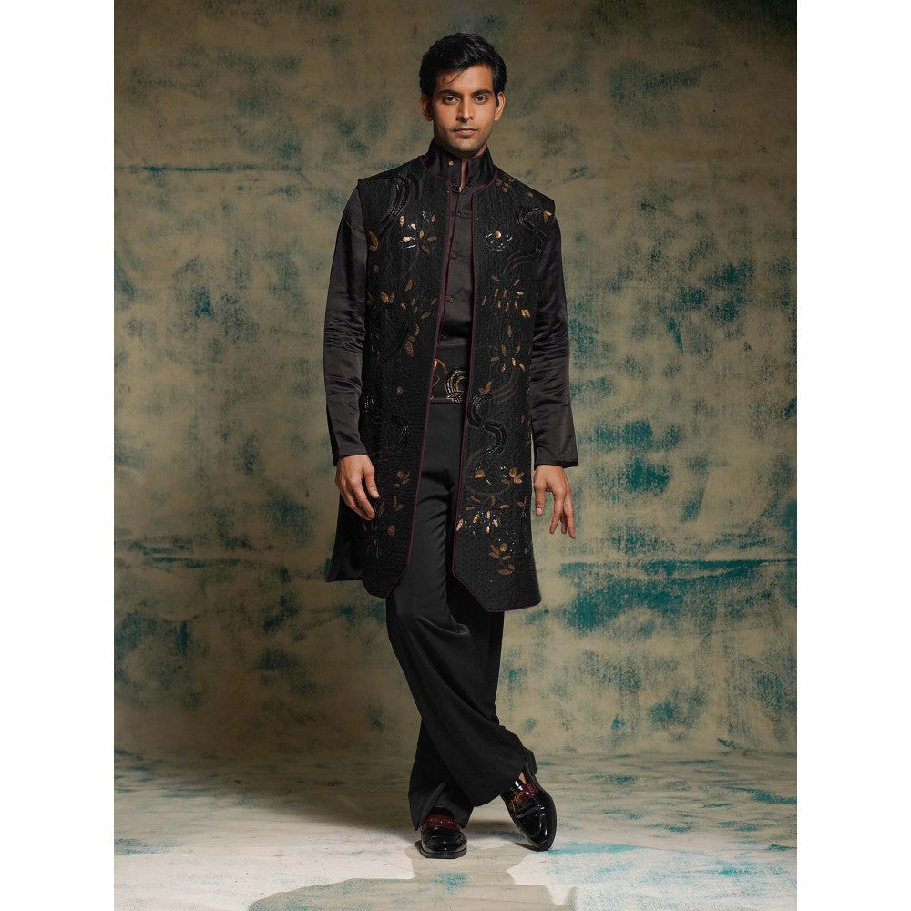 Jatin Malik Black Hand Embroidered Jacket with Shirt, Trouser and Belt