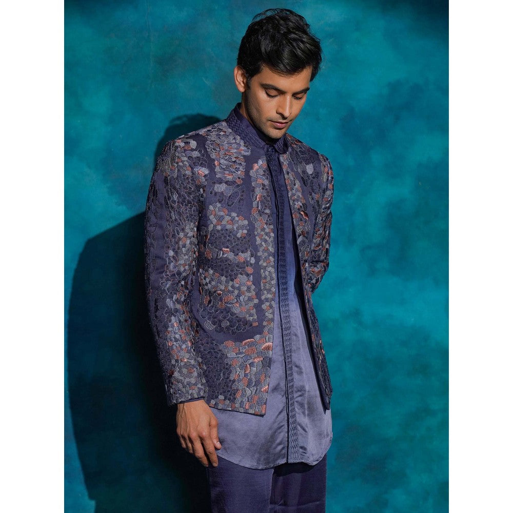 Jatin Malik Oceanic Purple Hand Embroidered Short Jacket with Kurta and Trouser
