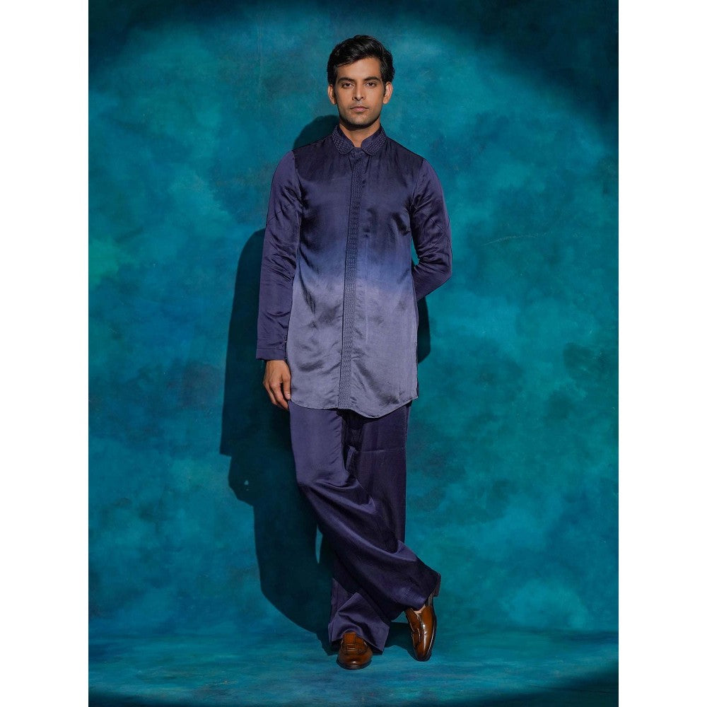 Description : Presenting Our Short Jacket Set In The Striking Oceanic Purple Hue. Hand-Embroidered To Perfection By Skilled Artisans Using Aari And Zardozi Techniques With Resham And Moti, This Piece Draws Inspiration From Shiva As Pashupatinath - The Eternal Guardian Of All Living Beings. A Celebration Of Protection, Strength, And Compassion, The Embroidery Reflects The Divine Balance Of Nature And Divinity. Paired With An Ombre Kurta And Straight Trousers.