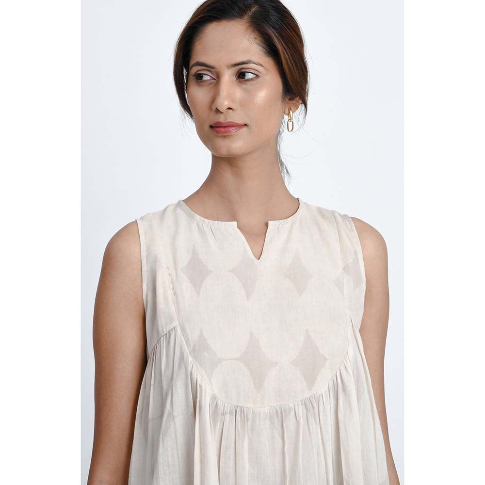 Description : Block Printed No-Sleeve Flared Yoke Top Paired With Soft Finishhed Cotton Printed Trousers With Pockets.The Top & The Trousers Is Minutely Detailed With Handwork In Golden Thread And By Signature Handmade Buttons.The Top & Trousers Have Been Made With Handcrafted Fabrics With Natural Dyes Hence There Might Be Some Color Tone Variations & Slight Print Imperfections As Each Piece Hand Made & Is Unique .