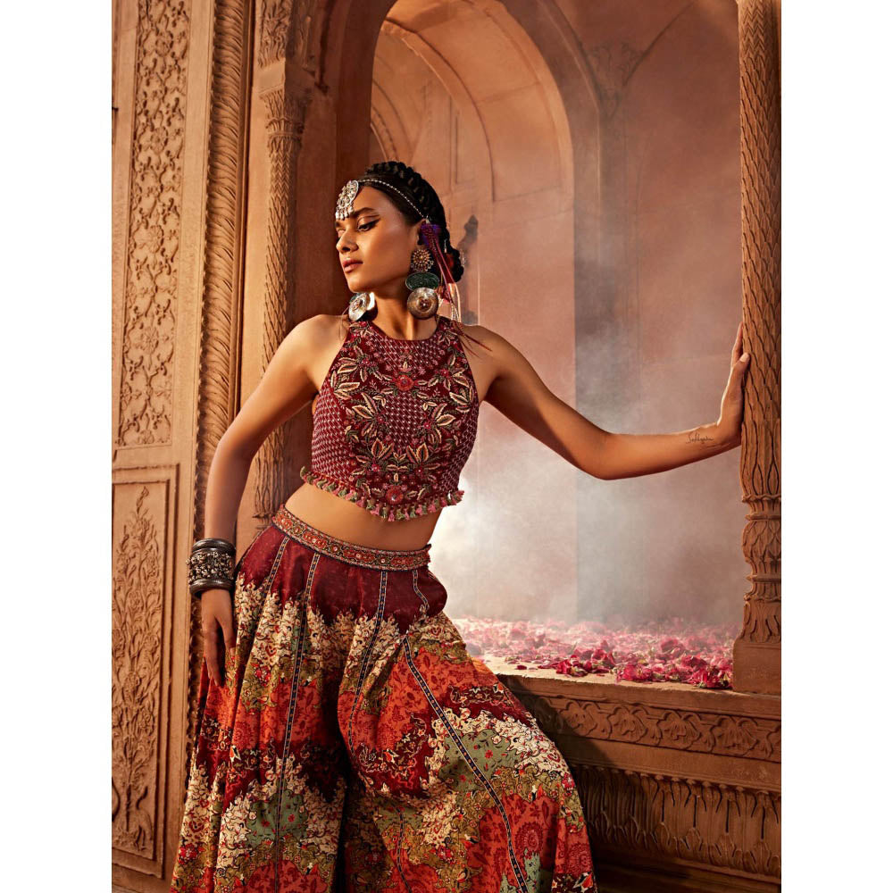 Maroon Mehvish Sharara with Blouse (Set of 2)