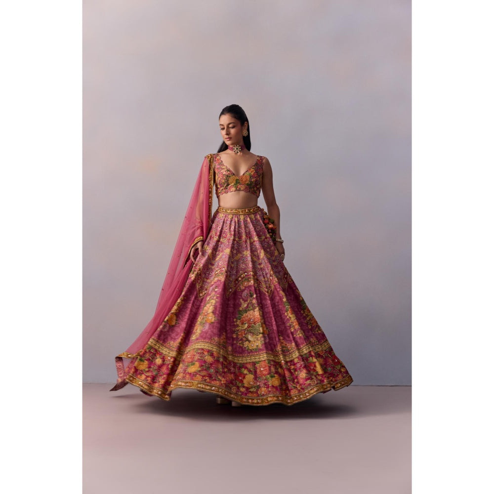 Zareen Candy Pink Embellished Floral Blouse with Lehenga and Dupatta (Set of 3)