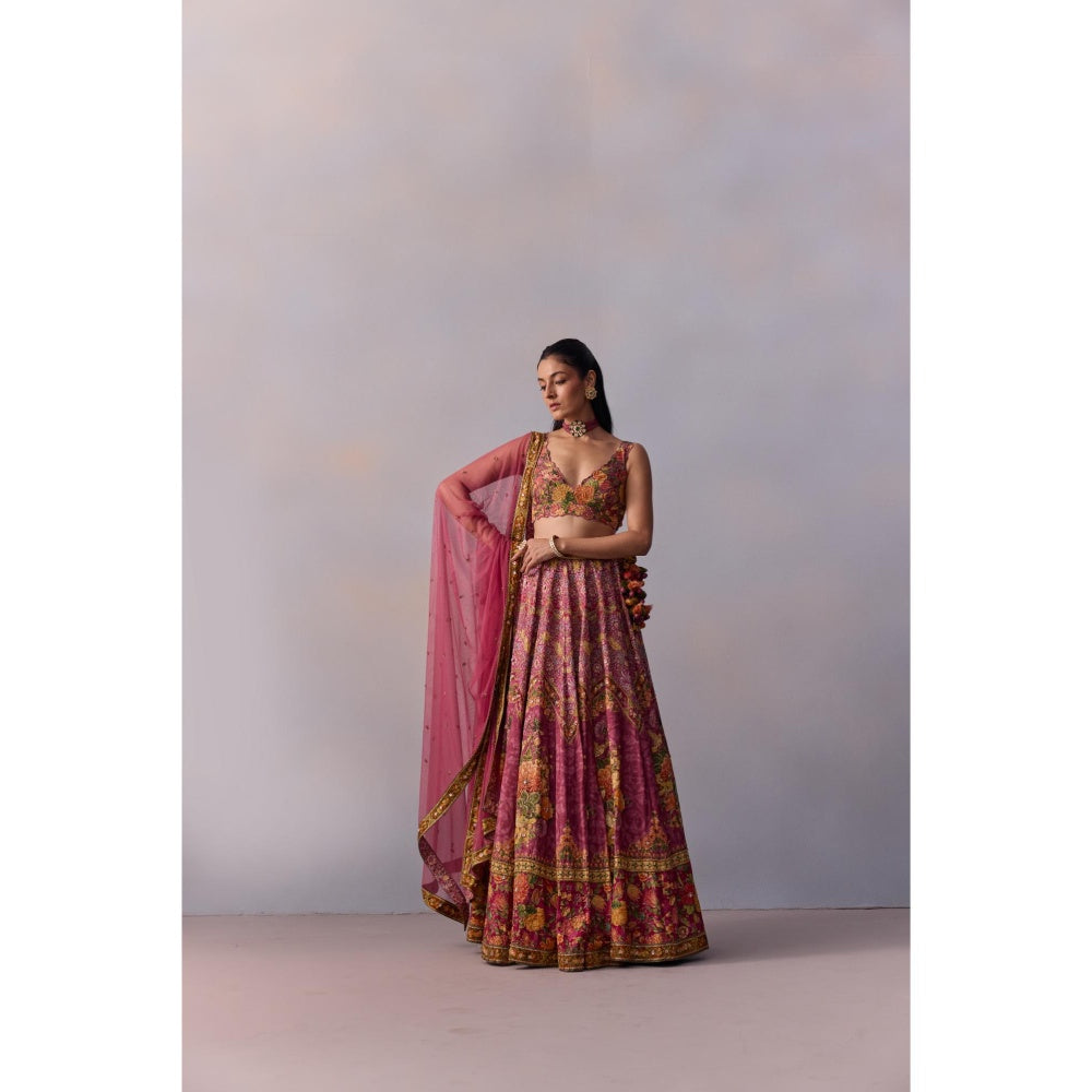 KALISTA Zareen Candy Pink Embellished Floral Blouse with Lehenga and Dupatta (Set of 3)