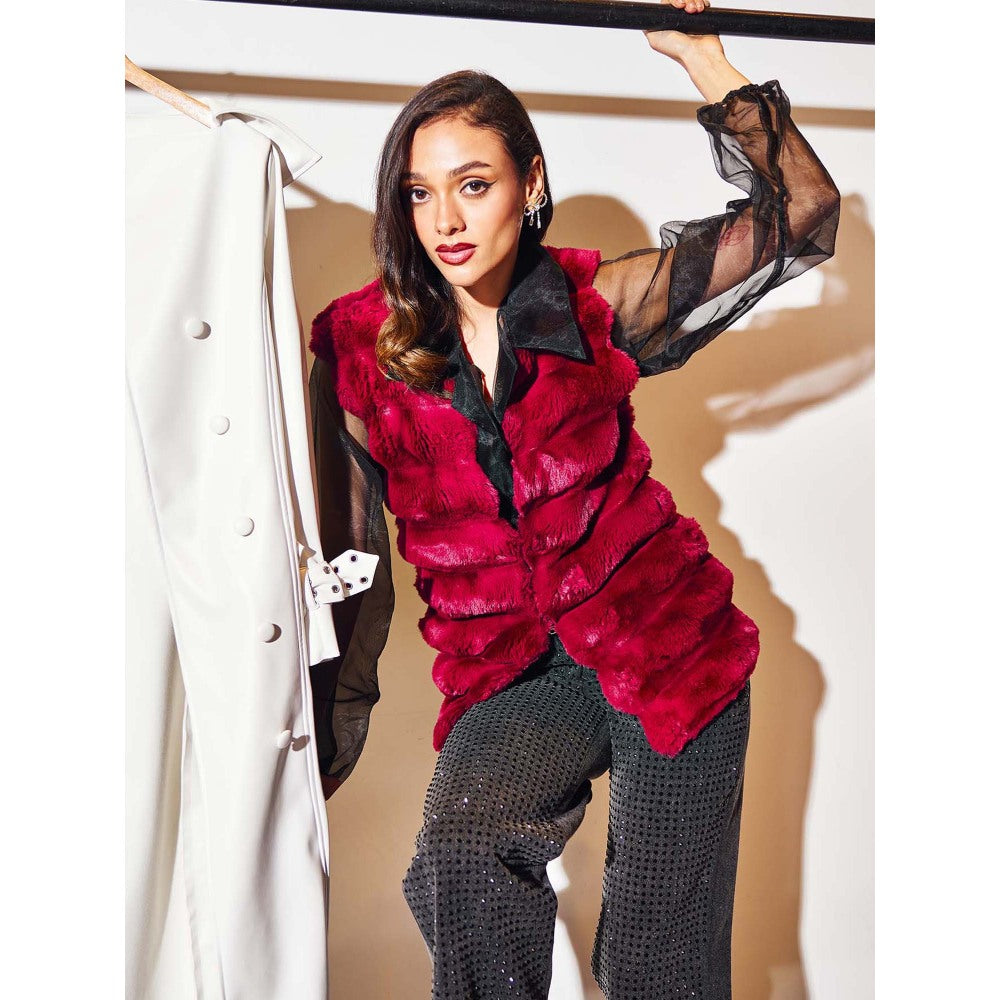 Description : A Deep Red Fur Jacket Offers Bold Sophistication with Its Rich, Dark Red Hue and Luxurious, Plush Texture